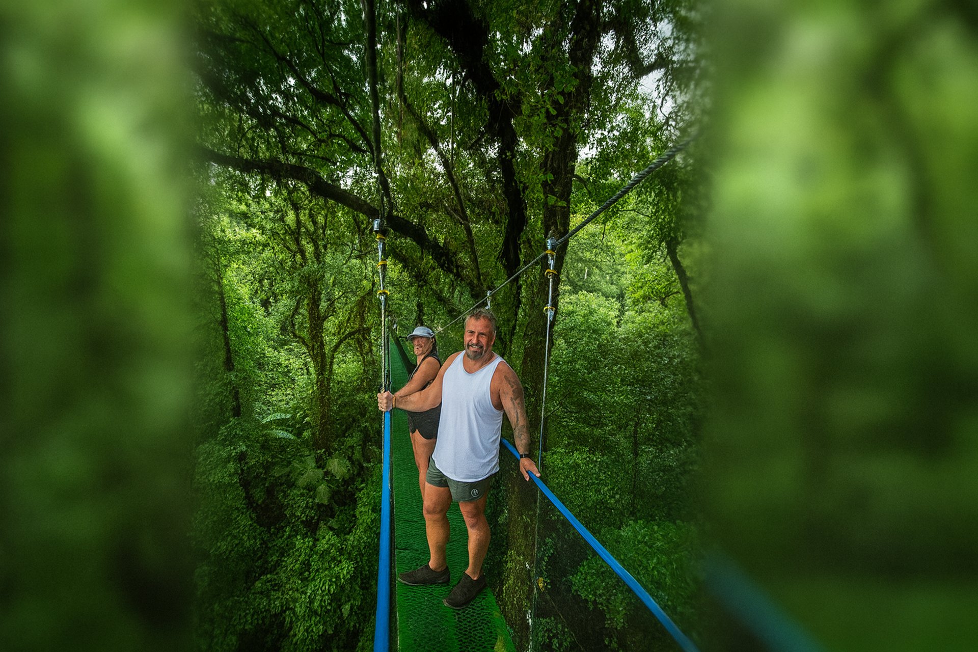 Our walk through the Hanging Bridges in the Heliconias Rainforest is located on the slopes of the Tenorio Volcano. This private reserve offers spectacular views of the rural community of Bijagua, Lake Nicaragua, and the surrounding landscapes. Its location provides the perfect opportunity to experience ecotourism and a natural paradise in one place.